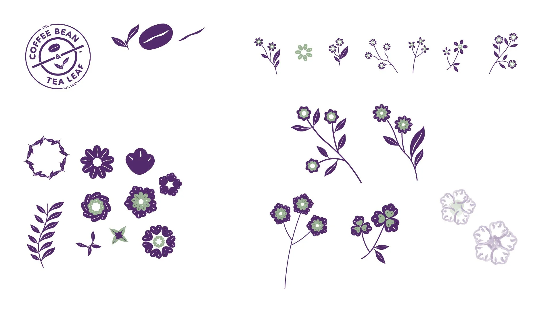 I started by experimenting with elements from the logo’s supergraphic, transforming them into various flower motifs as a nod to coffee flowers. However, after feedback, I decided to move away from this direction, as the floral focus might not resonate with a broader audience.