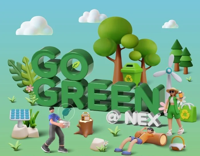 The second set focused on 3D typography. Taking a 3D approach, this design centered on the typography itself, with illustrations of people enjoying green spaces surrounding the words to emphasize the eco-friendly message.